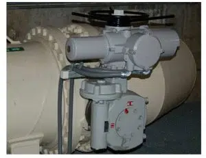 عکس زیر یک ولو دیافراگمی است که توسط یک موتور الکتریکی جریان فاضلاب تصفیه شده را کنترل می کند